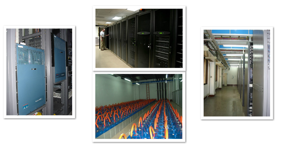 多组机房专用精密恒温、恒湿空调系统 保证通风、恒温、恒湿。机房温度:22±1摄氏度。相对湿度:50%±5%。静态条件下,空气中0.5mm的尘粒数少于18000粒/升。